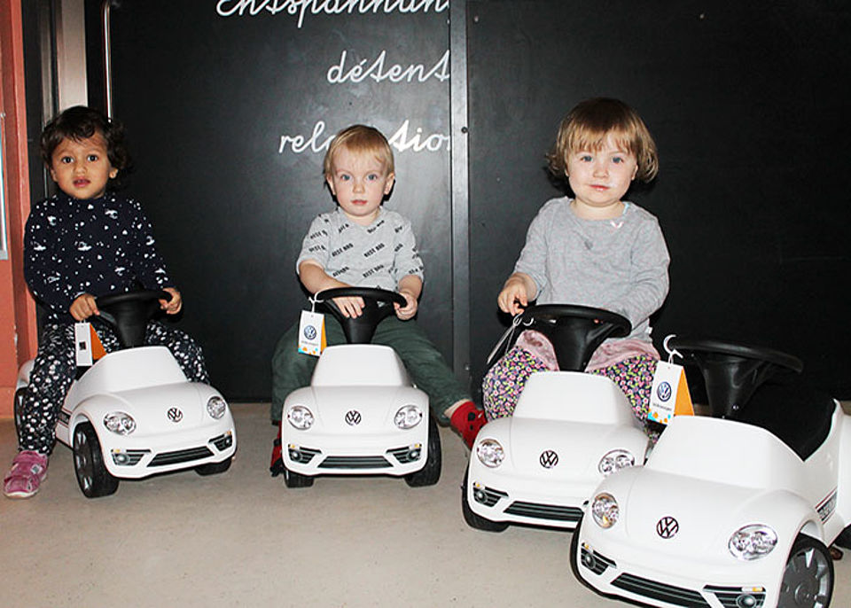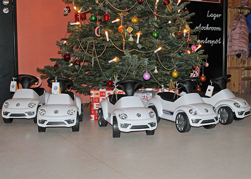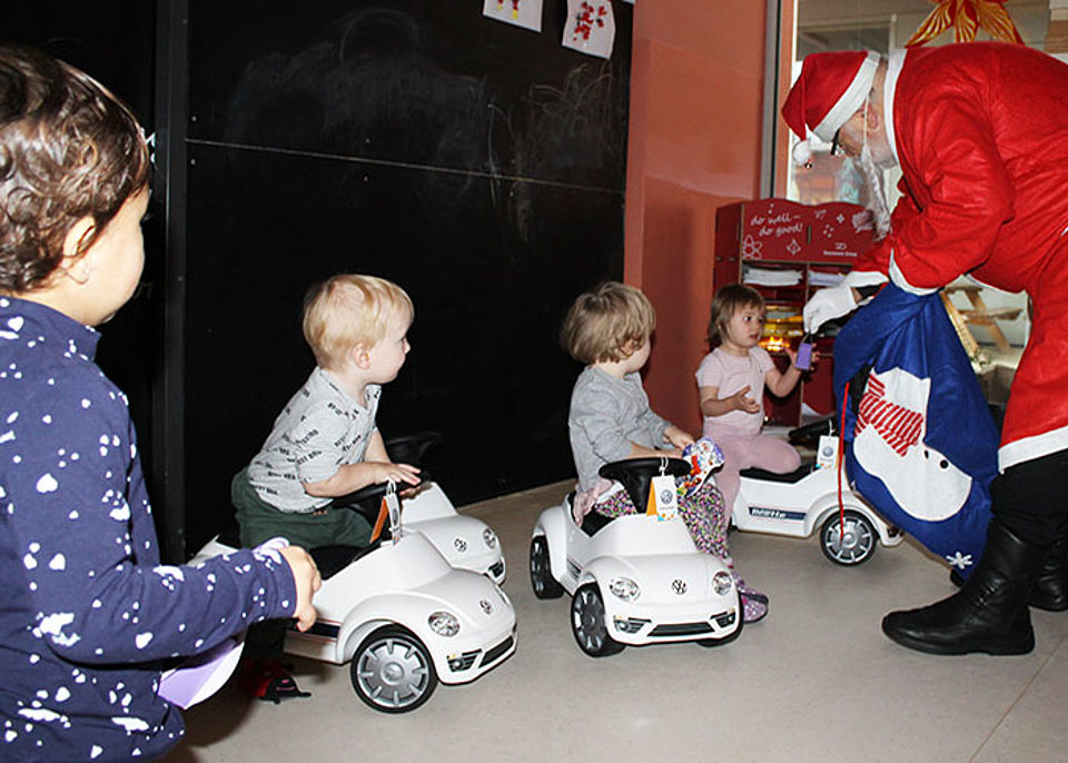 Das Autohaus Fischer erweiterte den Fuhrpark der Kita und wurde dafür mit strahlenden Kinderaugen belohnt. Die fünf neuen VW-Bobbycars wurden beim Weihnachtsmann-Besuch übergeben und von den Jüngsten gleich freudig in Empfang genommen. Vielen Dank dafür - die Kinder sind begeistert!