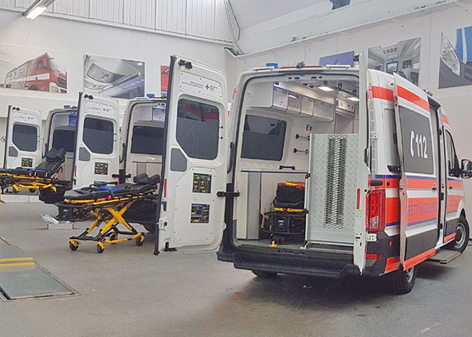 Die neuen KTW ersetzen die bestehenden sechs Jahre alten Fahrzeuge. Bei der Ausstattung wurde besonders auf physiologische Gegebenheiten geachtet. Rückenschonendes Arbeiten für die Mitarbeiter und eine sichere Transportumgebung für den Patienten haben schließlich größte Priorität. Daher wurden die KTW, wie bereits die neuen Rettungsfahrzeuge (RTW) des DRK-Kreisverbandes, mit einer modernen elektrohydraulischen Patientenfahrtrage bestückt, die ein leichtes Ein- und Ausladen von Patienten ermöglicht. Mit dem im Fahrzeug vorgehaltenen klappbaren Raupenstuhl können Patienten zudem komfortabel und rückenschonend eine Treppe hinuntergefahren werden. Der Innenraum verfügt zudem über einem dritten Sitzplatz, so dass Auszubildende den Transport begleiten können.