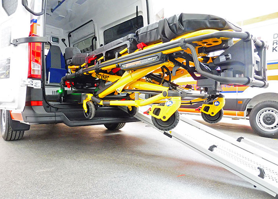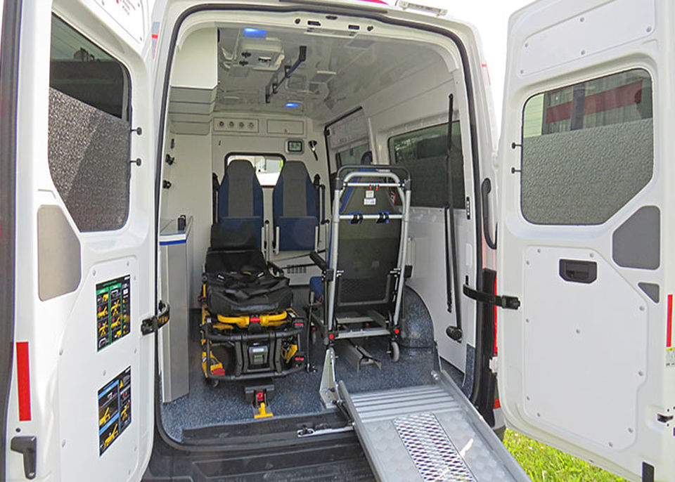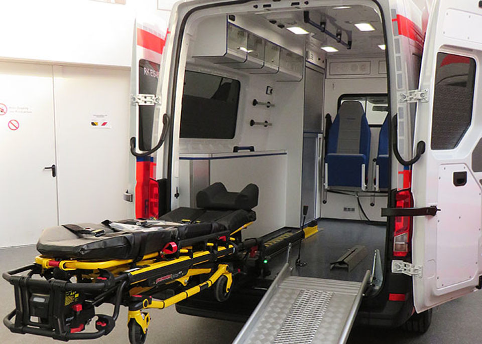 Wie bereits bei den vier Modellen, die Anfang des Monats in Empfang genommen werden konnten, wurde bei der Ausstattung besonders auf physiologische Gegebenheiten geachtet. Rückenschonendes Arbeiten für die Mitarbeiter und eine sichere Transportumgebung für den Patienten haben schließlich größte Priorität. Daher wurden die KTW mit einer modernen elektrohydraulischen Fahrtrage bestückt, die ein leichtes Ein- und Ausladen von Patienten ermöglicht. Mit dem im Fahrzeug vorgehaltenen klappbaren Raupenstuhl können Patienten zudem komfortabel und rückenschonend eine Treppe hinuntergefahren werden. Der Innenraum verfügt zudem über einem dritten Sitzplatz, so dass Auszubildende den Transport begleiten können.
