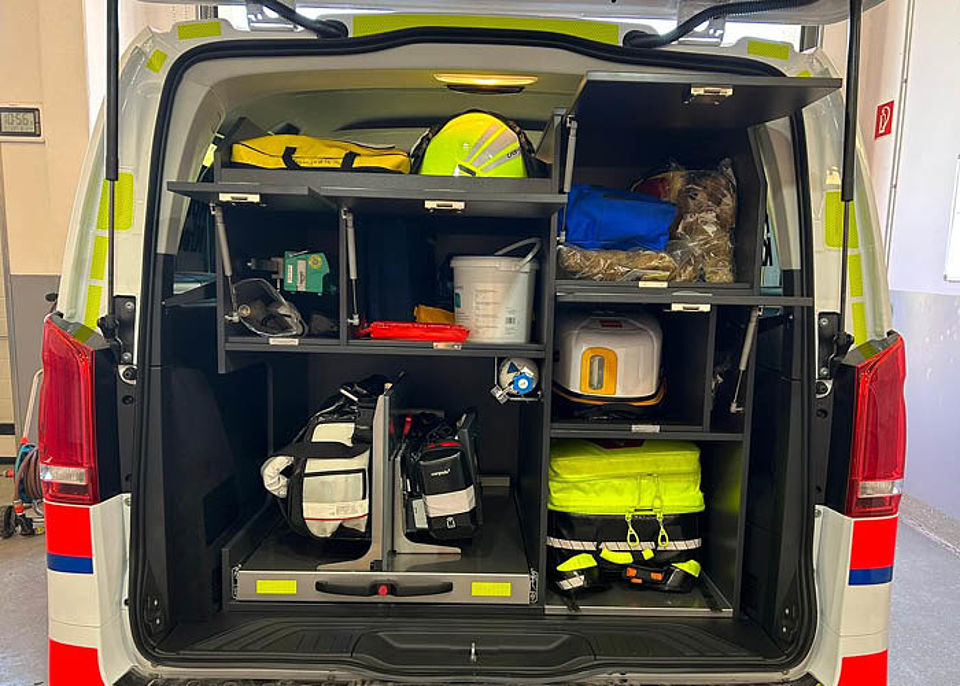 Die Konzeption der Fahrzeuge richtet sich mit dem Schwerpunkt der Sicherheit für unsere MitarbeiterInnen und NotärztInnen aus.