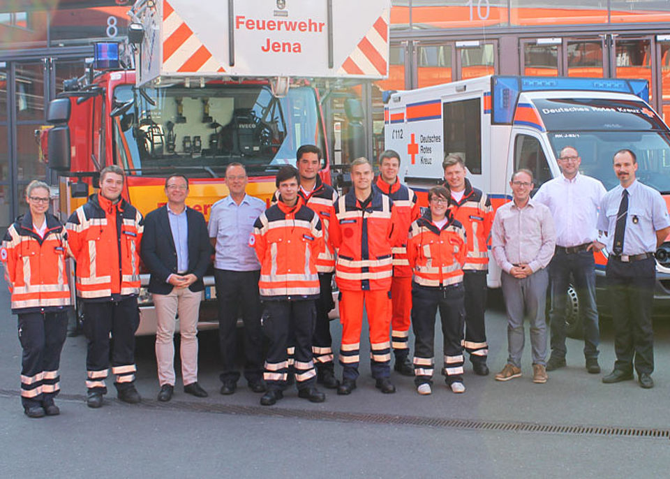 Der DRK-Kreisverband Jena-Eisenberg-Stadtroda begrüßte, zusammen mit Vertretern der Stadt Jena, als Ausbildungsträger acht Notfallsanitäter-Azubis, darunter wieder zwei für die Jenaer Feuerwehr. Der theoretische Unterricht findet an der Berufsschule statt. Die praktische Ausbildung wird auf den Lehrrettungswachen des DRK-Kreisverbandes und der Rettungswache der Stadt Jena sowie in geeigneten Kliniken durchgeführt.