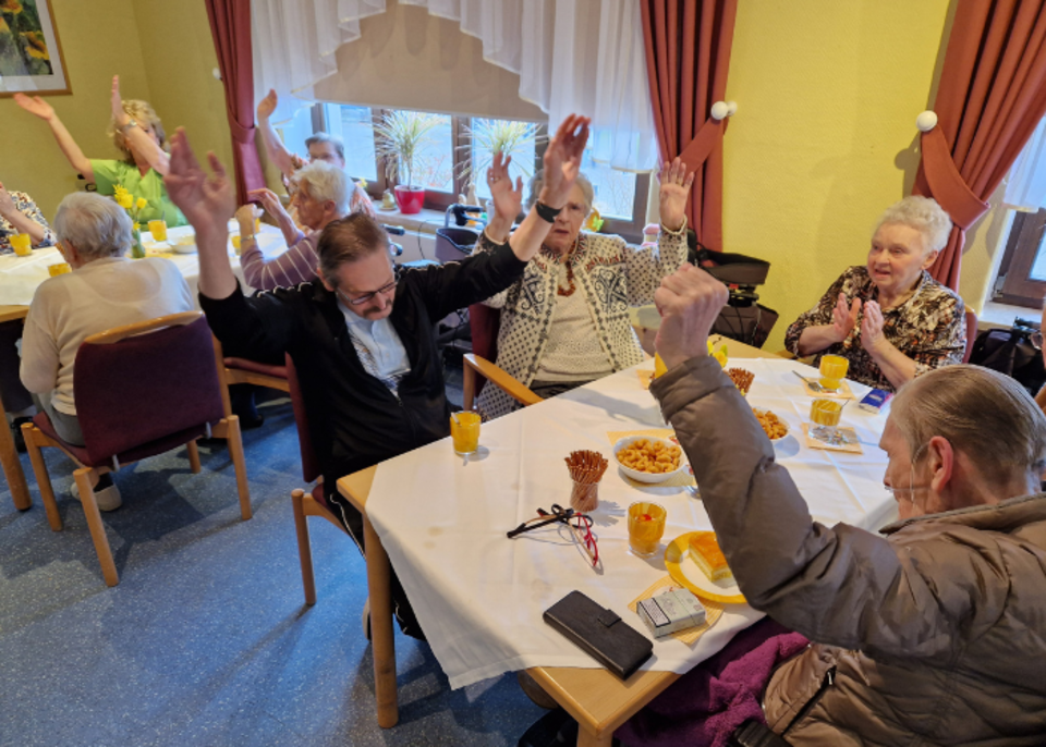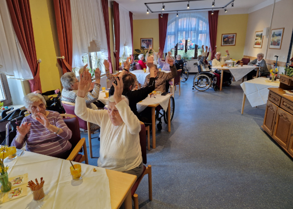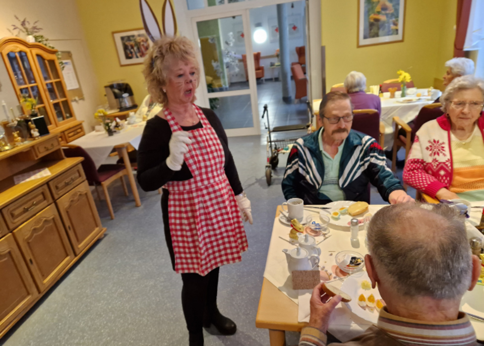Zu Kaffee und Kuchen feierten unsere BewohnerInnen gemeinsam das Osterfest. Unsere zwei fleißigen Häsinnen Ramona und Birgit überraschten die BewohnerInnen mit liebevoll gestalteten Osterkörbchen.