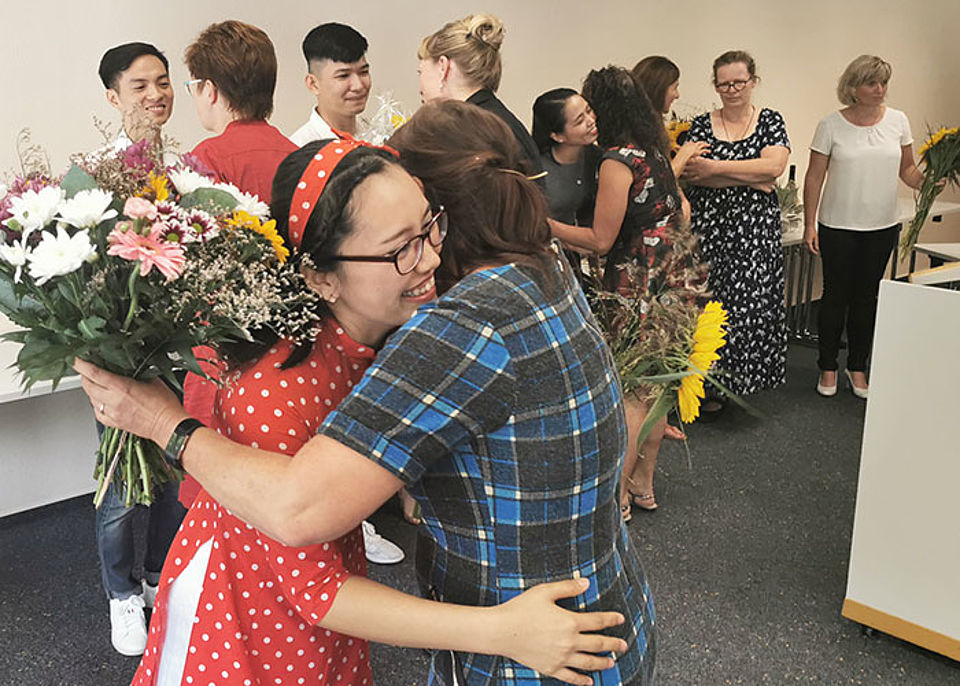 Herzlichen Glückwunsch - unsere Azubis haben bestanden! Voller Freude konnten sechs Schüler - darunter erstmals ein junges Talent aus Vietnam - ihre Zeugnisse im Rahmen einer Abschlußfeier entgegennehmen. Nach dreijähriger Ausbildung sind sie nun Pflegefachkräfte und unterstützen die ambulanten und stationären Teams im DRK-Kreisverband.