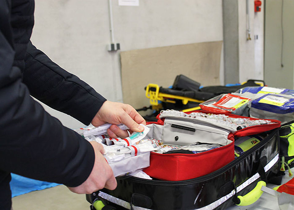 Die Geräteausstattung des NEF geht mit einem mobilen Reanimationsgerät sowie einem Sonografiegerät über die gültigen Normen hinaus.