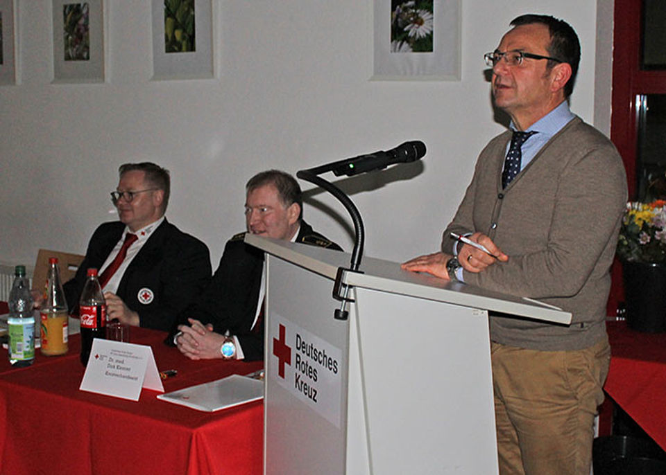 In seiner Rede brachte Präsident Gerhard Bayer zum Ausdruck, dass er sehr stolz auf die Leistungen der ehrenamtlichen Helfer und hauptamtlichen Mitarbeiter ist und dankte ihnen ganz herzlich für ihr großes Engagement und ihren Einsatz in den verschiedensten Bereichen. Sein Dank galt darüber hinaus allen Fördermitgliedern und Spendern sowie Freunden, Geschäftspartnern und der Presse, die durch ihr Wohlwollen und ihre Aufgeschlossenheit mitgeholfen haben, die vielfältigen Aufgaben des Roten Kreuzes zu unterstützen.