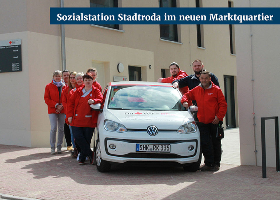 Seit Ende März startet die DRK-Sozialstation Stadtroda ihre Pflegetouren vom neuen Marktquartier in Stadtroda aus. Der bisherige Standort an der Roda 3 wird einem anderen Zweck zugeführt. Mit dem Umzug ändert sich nach 20 Jahren auch die Telefonnummer. Ab sofort sind Pflegedienstleiter Thomas Schumann und sein Team unter der 036428 999-700 erreichbar.