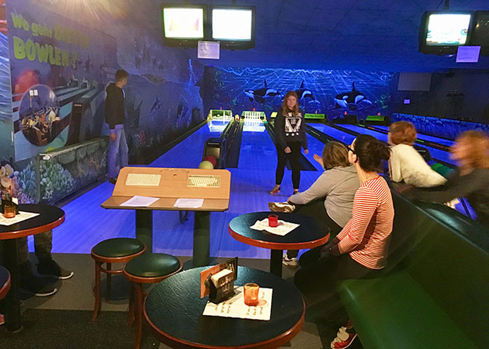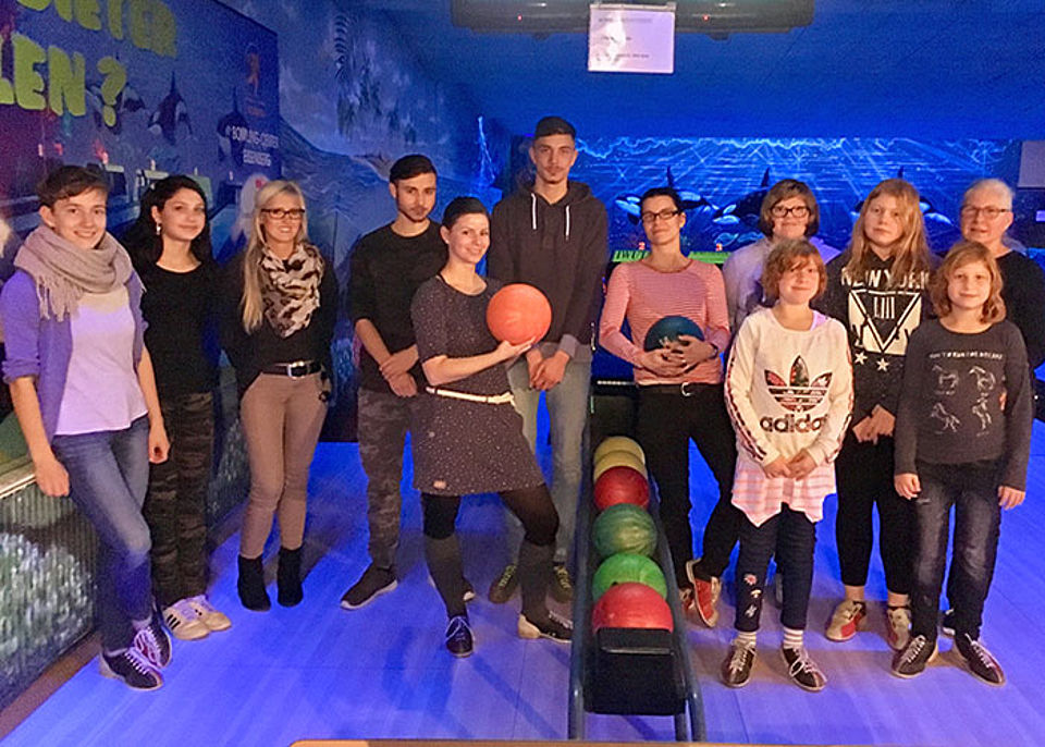 Ausgerüstet mit Bowlingschuhen wurde sich auf zwei Bahnen verteilt. Schon bald hatte jeder die richtige Kugel gefunden und dann ging es auch schon los. Mit sichtlicher Begeisterung und Motivation ließen die Kinder die Kugeln rollen und konnten sich gegen ihre Familienhelfer beweisen. Nicht jede fand das gewünschte Ziel, der Freude am Spiel tat das aber keinen Abbruch. Nebenbei gab es ausreichend Gelegenheit, den Nachmittag - frei von Stress und schulischen Verpflichtungen - zu genießen und sich auszutauschen.