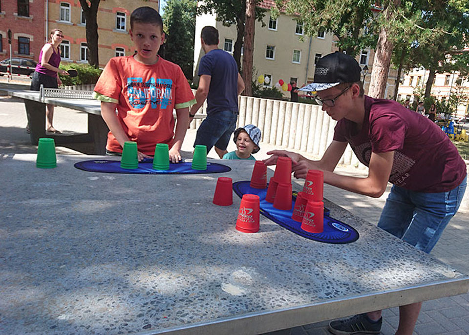 Gemeinsam erlebten sechs Familien, abseits der Alltagssorgen, einen abwechslungsreichen Ferientag mit ganz viel Spaß und Aktionen auf dem Spielplatz in Jena Ost. Stoffbeutel bemalen, Speed Stacks, Twister, Kubb und Sandburgen bauen erfreuten groß und klein. Ein Picknick mit Obst, Kaffee & Kuchen sowie Würstchen zum Mittag rundete den schönen Tag ab.