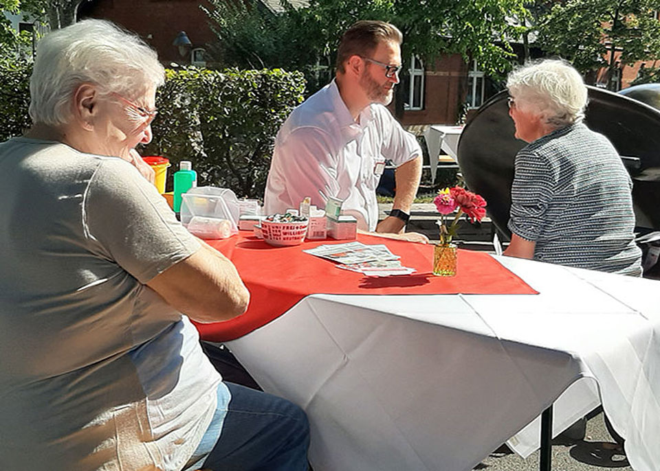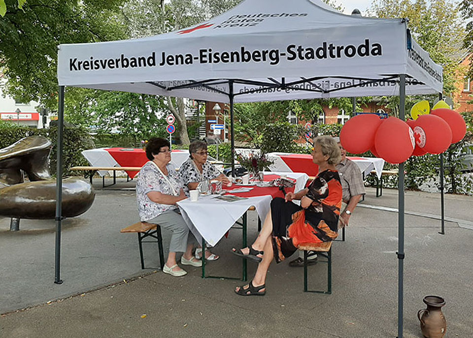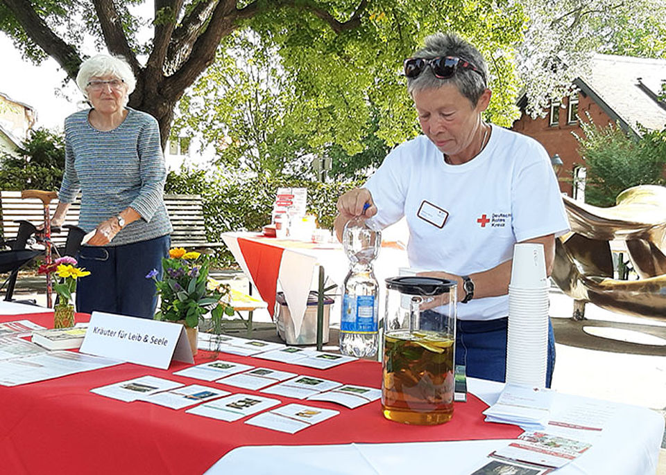 Die vielen Besucher konnten sich an den DRK-Ständen zu den vielfältigen Angeboten und dem Schulkonzept informieren, sich die Blutzuckerwerte messen lassen und bei selbstgebackenen Kuchen, Kaffee und Kräuterlimonade entspannt eine Pause eingelegen. Außerdem gab es Kreativangebote und Profitipps von den Experten der Teddy-Nähgruppe sowie Beratungen zu Angeboten im Alter. Die Rotkreuzdose sowie ein neuer Tai Chi Kurs, der am 17. September im Rotkreuzzentrum startet, stießen dabei auf großes Interesse.