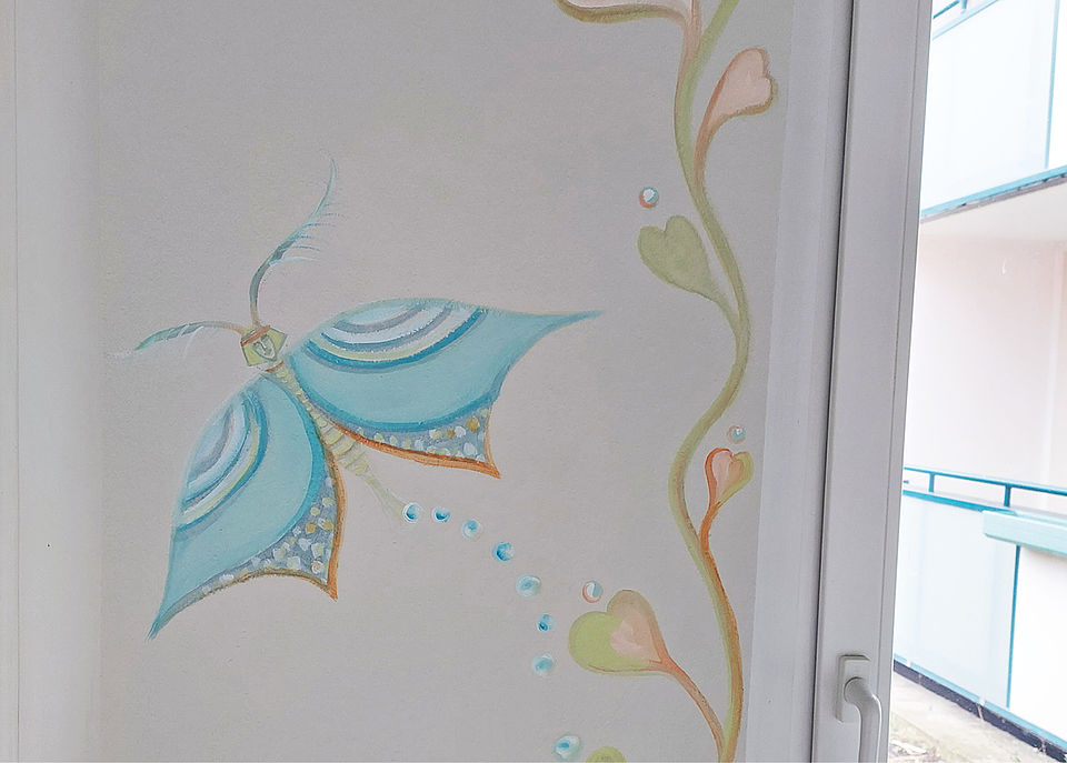 Im Foyer der Einrichtung soll ein farbenfrohes und fantasievolles Wandbild mit Motiven aus der Flora und Fauna entstehen. Es soll als Metapher für den Neubeginn nach der Coronazeit stehen. Besonders das Foyer, das die Besucher*innen zuerst betreten, soll eine herzliche und angenehme Atmosphäre vermitteln und zur Aktivität anregen.