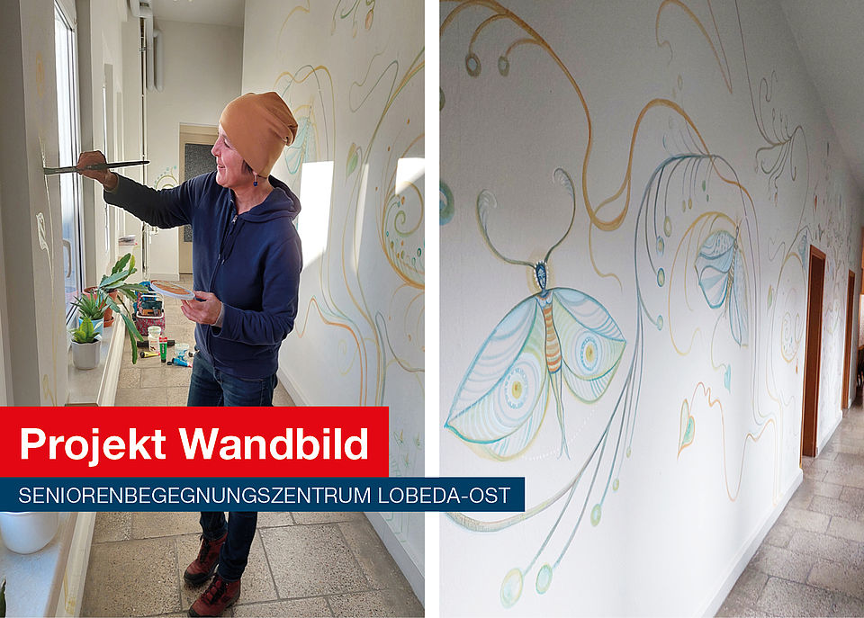 Als das DRK-Seniorenbegegnungszentrum in Lobeda-Ost im Sommer 2021 während der vorherrschenden Corona-Pandemie vorübergehend wieder öffnen konnte, entstand die Idee des Projektes "Wandbild".