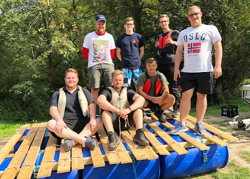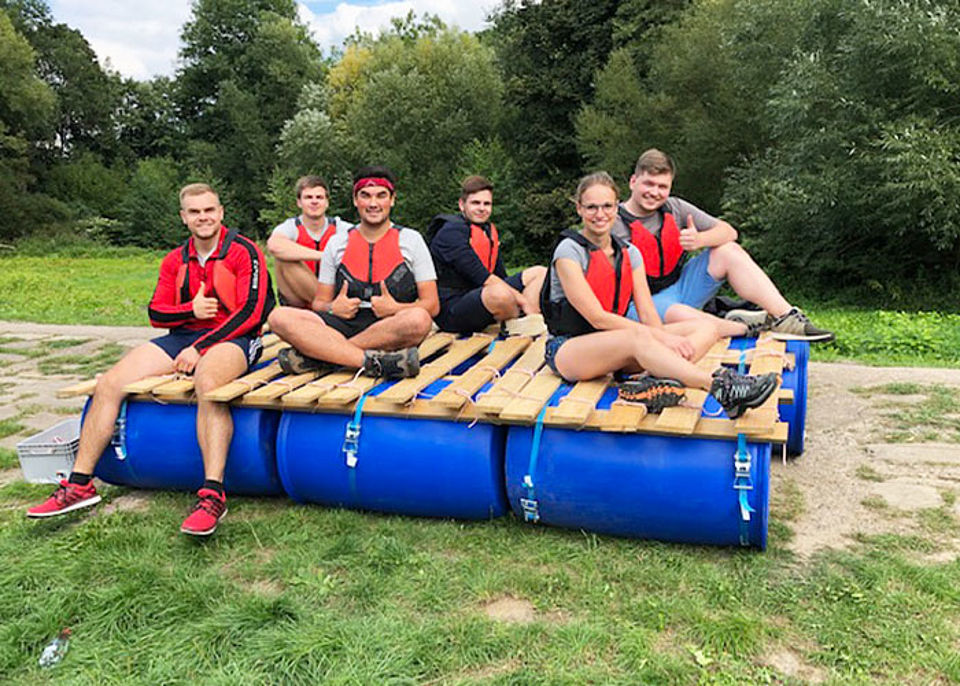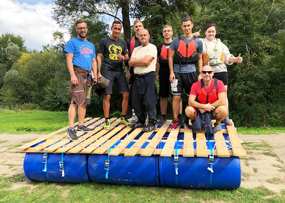 Um die Teamfähigkeit, zielorientiertes Handeln, Verantwortungsbewusstsein und Motivation unserer Azubis im Rettungsdienst weiter zu stärken, fand in der Einführungswoche ein Outdoortag mit vielen Spielen, Floßbauen und anschließender Floßfahrt auf der Saale statt.