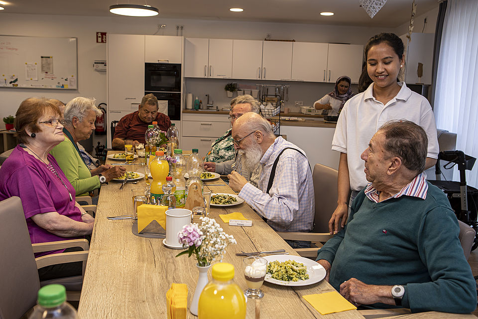 Zwölf Seniorinnen und Senioren mit Pflege- und Versorgungsbedarf finden hier nicht nur Geselligkeit und Unterstützung bei allen Herausforderungen des Alltags, sondern auch ein sicheres und barrierefreies Wohnumfeld. Gleichzeitig bleibt ihnen ein hohes Maß an selbstbestimmtem Leben erhalten.
